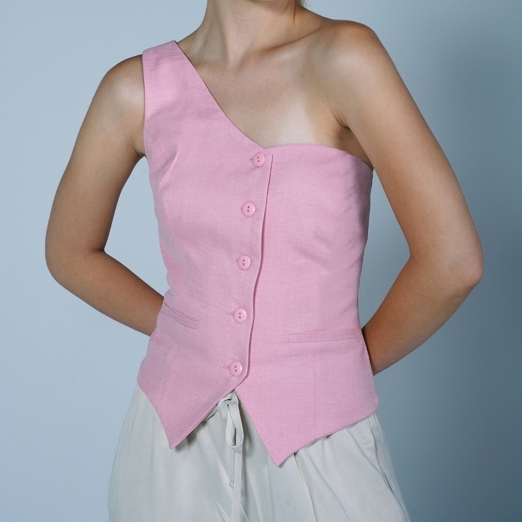 Um toque de sofisticação com um design moderno e único. Nosso colete assimétrico em tom de rosa suave possui fechamento frontal por botões e um corte estruturado que valoriza a silhueta. Feito em tecido leve e confortável, é a peça perfeita para compor looks elegantes e despojados ao mesmo tempo.